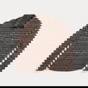 Fibre-dyed double-knit jacquard made with a wool blend. Brushed texture. Plaid pattern and colour palette inspired by a vintage swatch. Woven reinforcements on the interior. Chamois lining in the hand-warmer pockets. Corozo buttons.