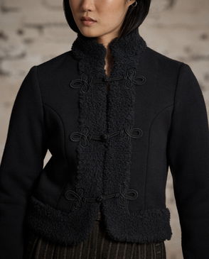 Fitted jacket made with sueded sheepskin. Vintage-inspired model. Belted back. half-lined. Corozo buttons.