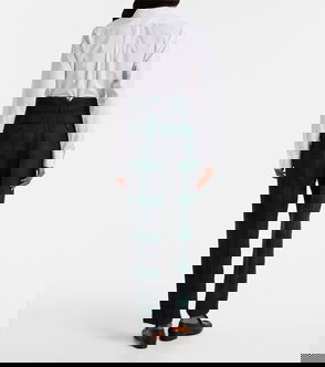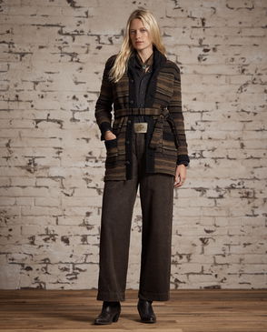 Pleated trousers made from wool-and-cotton twill cloth. The fibre-dyed, yarn-dyed fabric has been custom-developed with a storied British mill. Antique-inspired striped pattern. Based on a vintage model. Comes with a buckled self-belt.