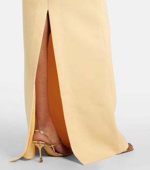 Those surrounding you will turn green with envy when they see you in this maxi dress from Rebecca Vallance. This piece features an alluring cutout at the chest and a thigh-high side-slit at the left leg.