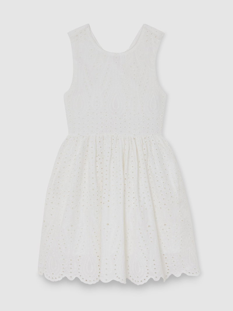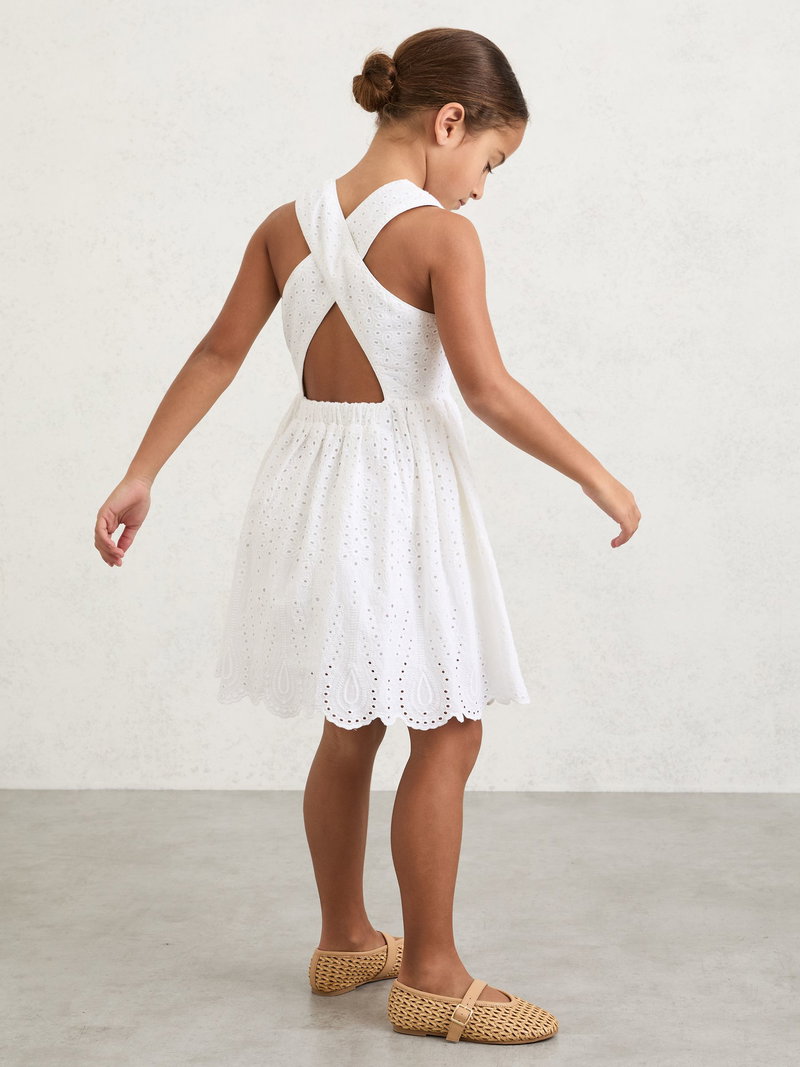 13-14 Yrs Cotton Broderie Cross-Back Dress In White