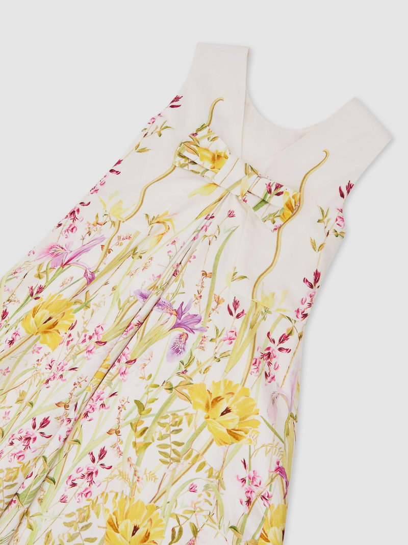 13-14 Yrs Cotton Floral-Print Bow-Detail Dress In Ivory Print