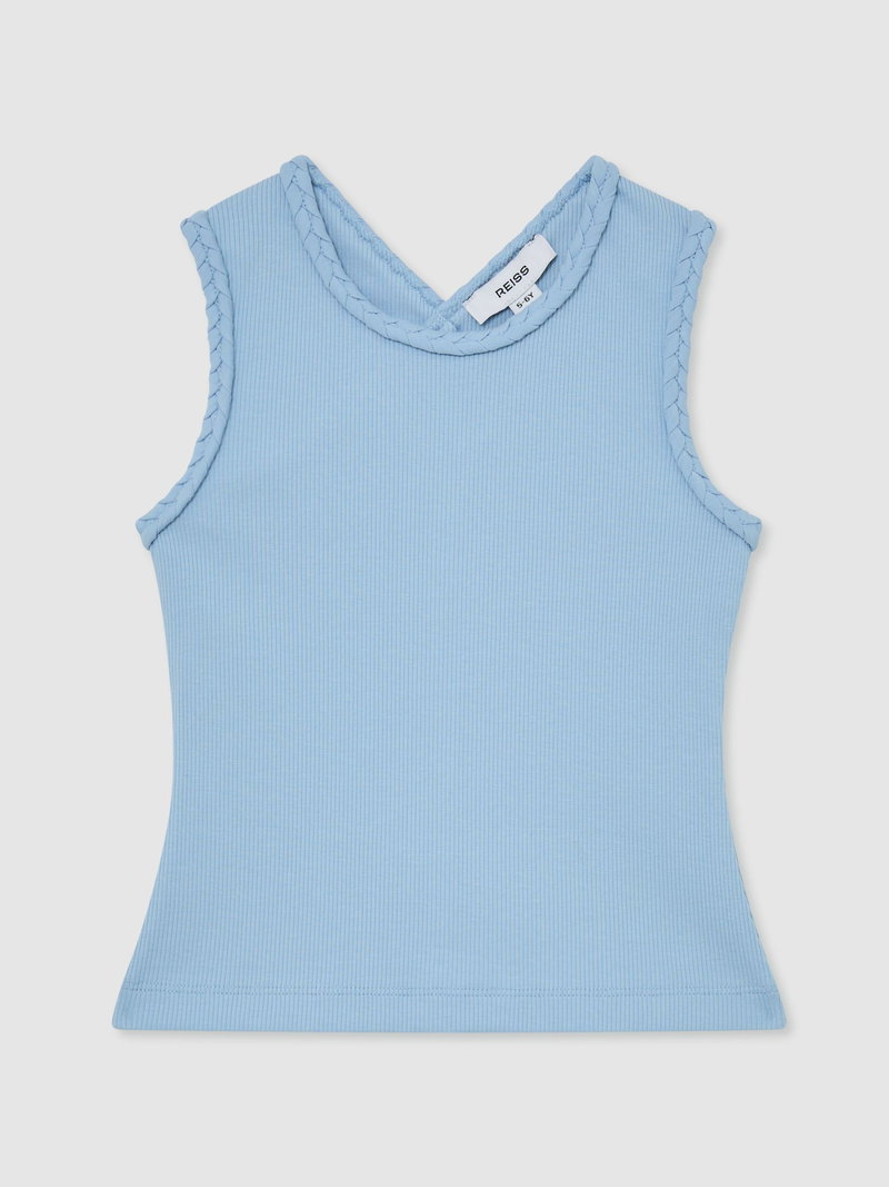 13-14 Yrs Cotton Plaited-Trim Cross-Back Vest In Pale Blue