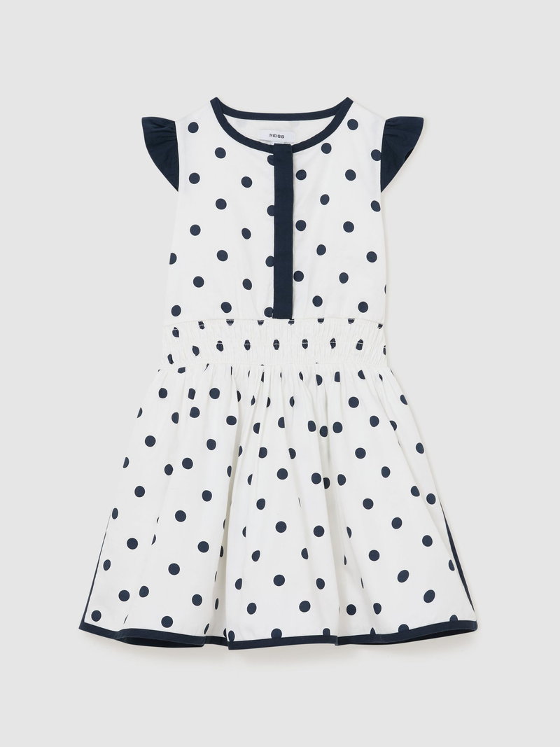13-14 Yrs Cotton Polka-Dot Waisted Dress In Navy/White