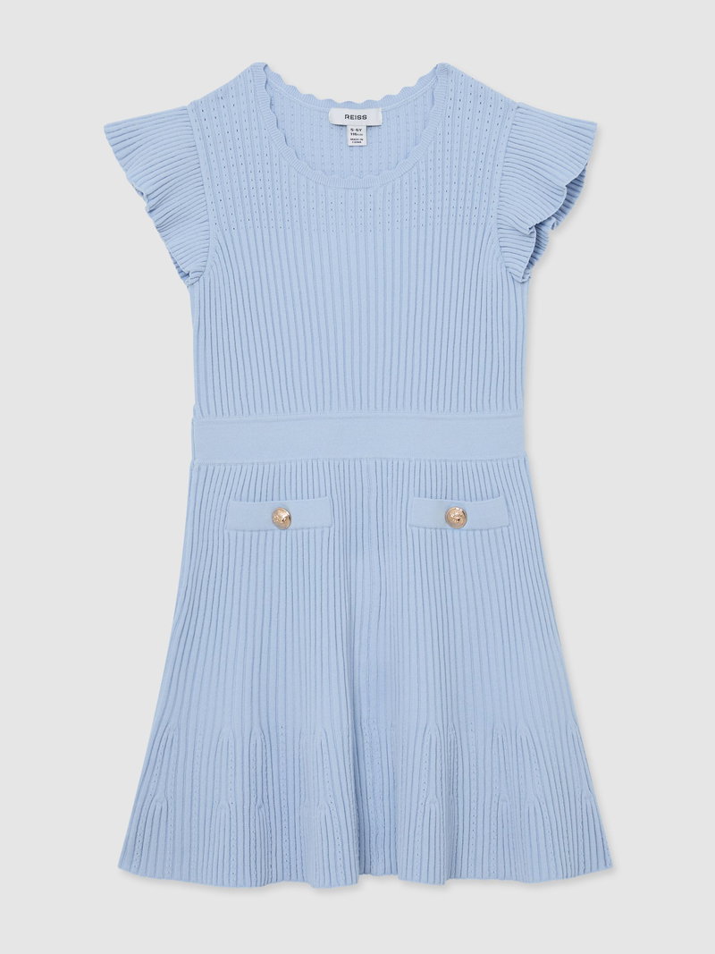 13-14 Yrs Pointelle-Knit Ribbed Dress In Pale Blue