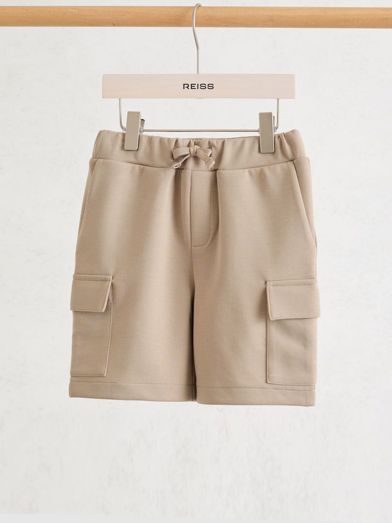13-14 Yrs Premium Interlock-Jersey Cargo Shorts In Stone