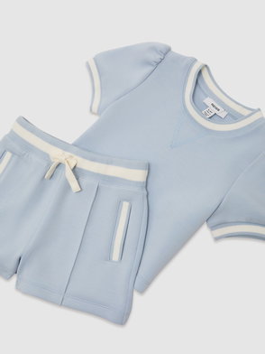 13-14 Yrs Premium Interlock Top And Shorts Set In Pale Blue