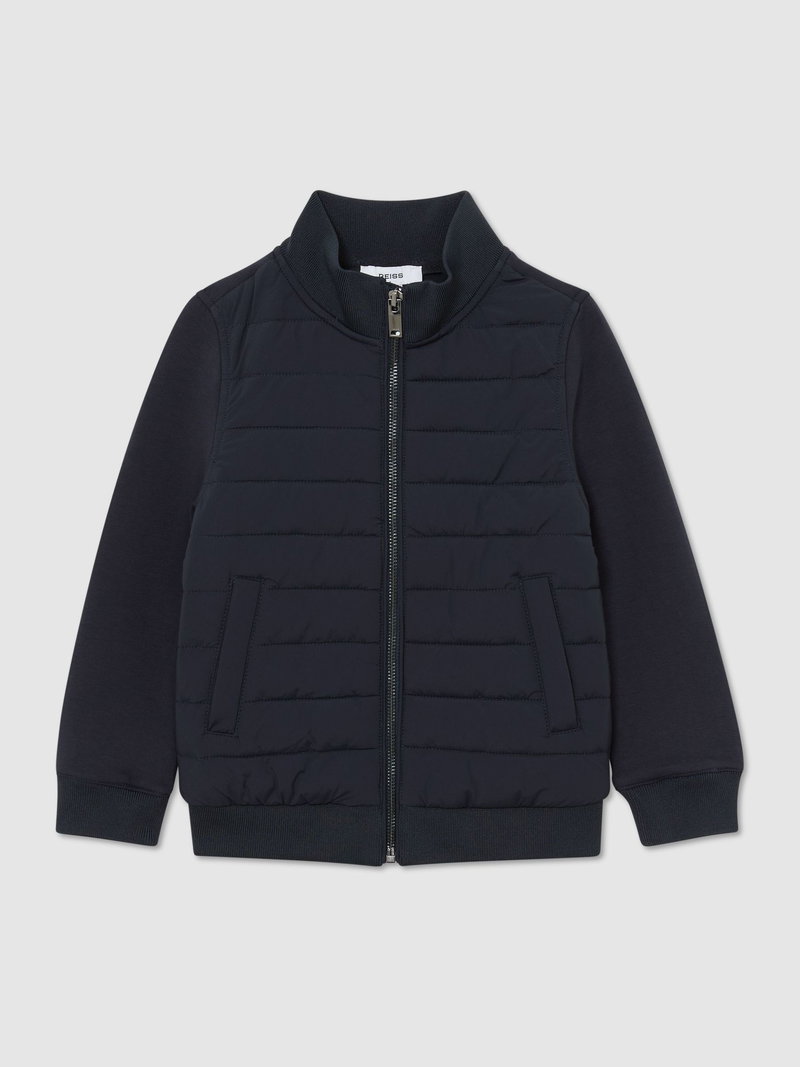 13-14 Yrs Quilted Hybrid Zip-Front Jacket In Navy