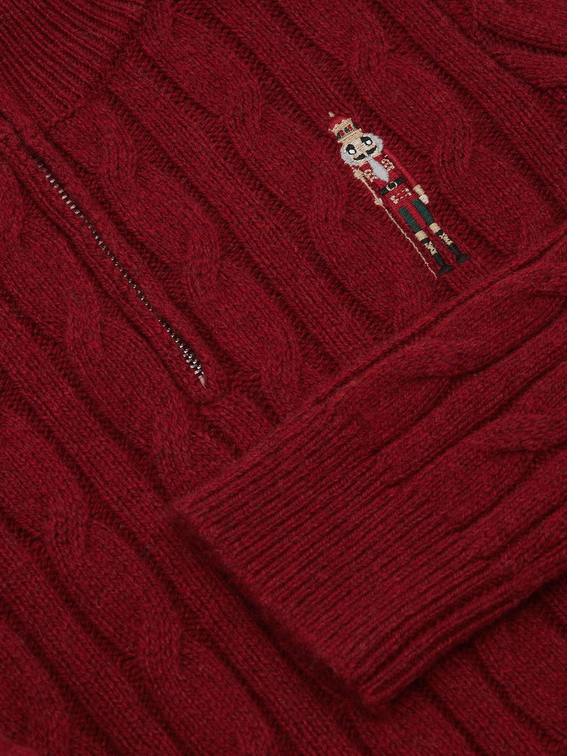 13-14 Yrs Wool-Blend Half-Zip Nutcracker Jumper In Dark Red