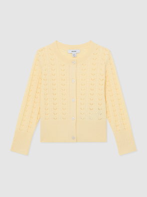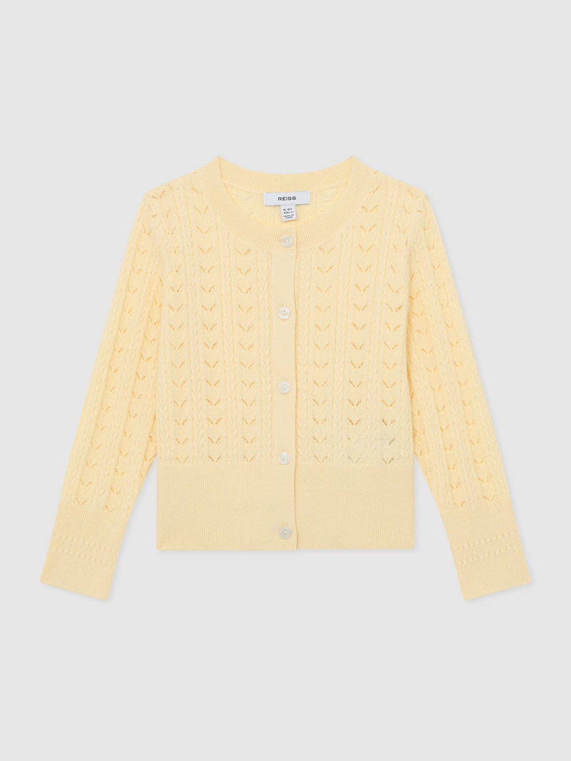 13-14 Yrs Wool-Cotton Pointelle Cardigan In Lemon