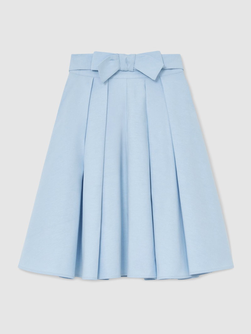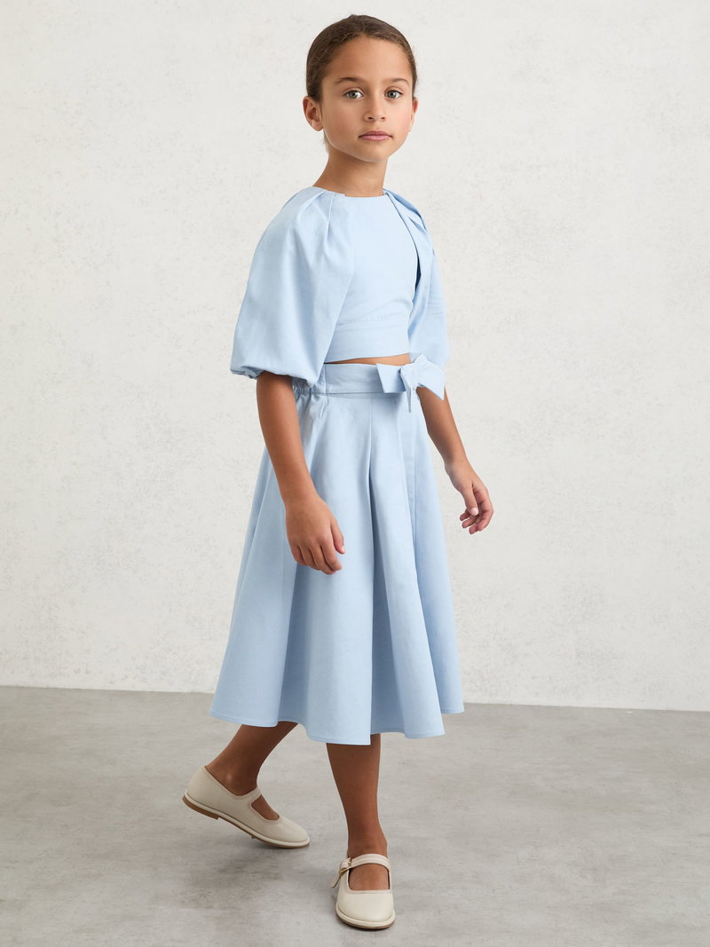 3-9 Yrs Bow-Detail Pleated Midi Skirt In Pale Blue