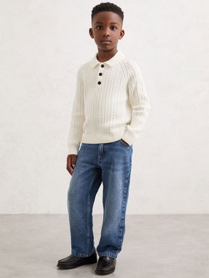3-9 Yrs Cable-Knit Jumper With Wool In Off White