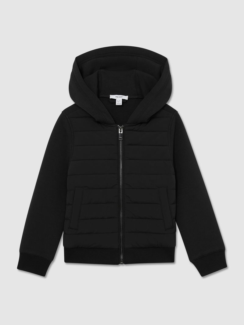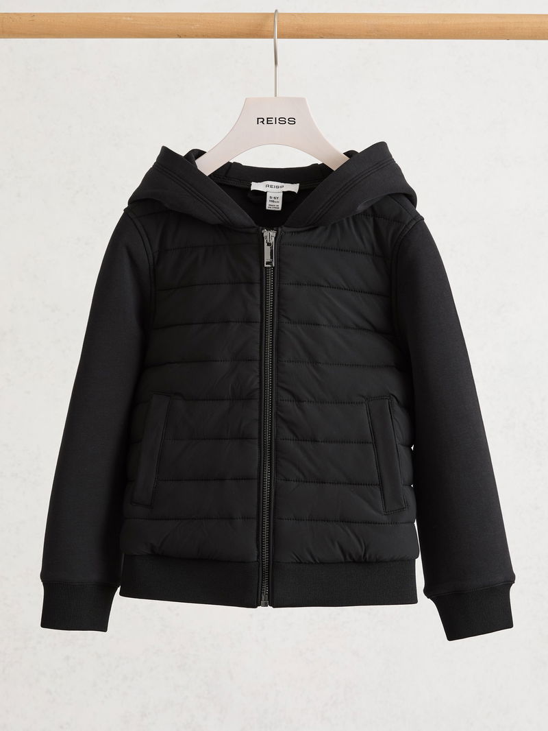 3-9 Yrs Hybrid Zip-Through Hooded Jacket In Black