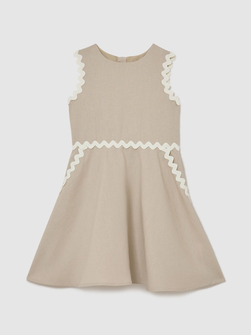 3-9 Yrs Linen-Blend Ric-Rac Trim Dress In Neutral