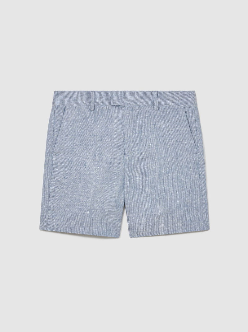 3-9 Yrs Linen Tailored Shorts In Soft Blue