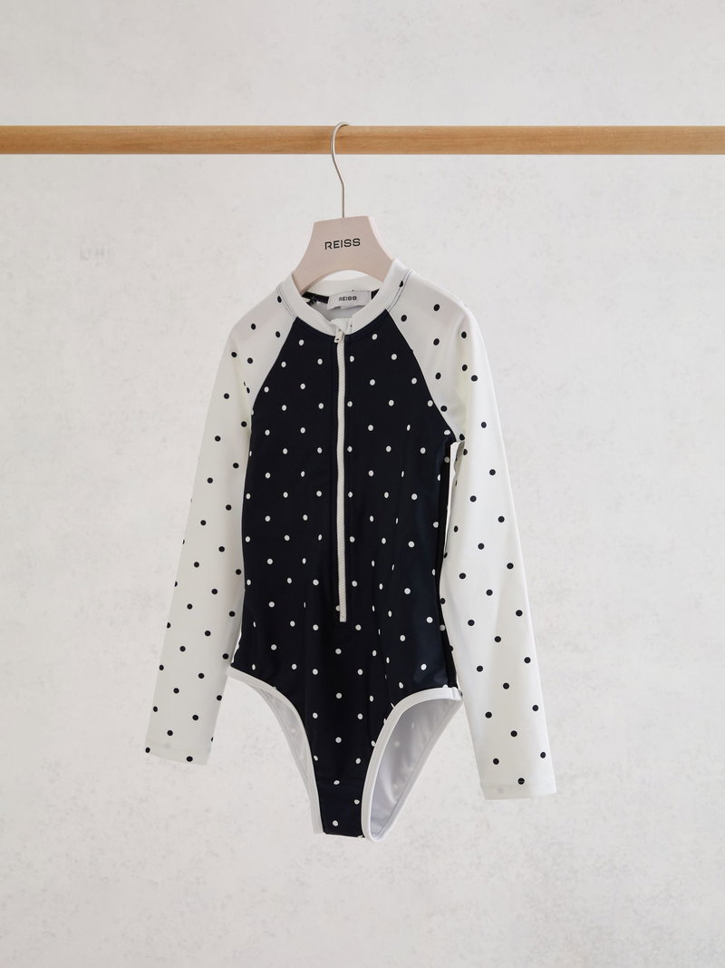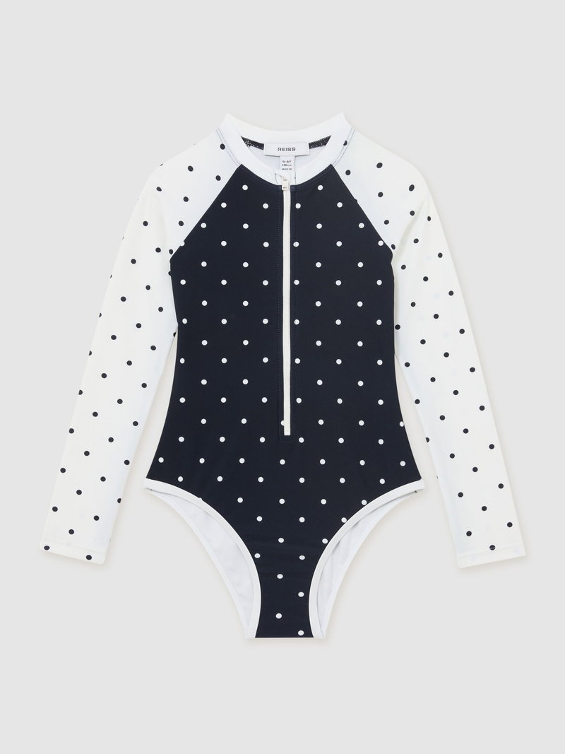 3-9 Yrs Polka-Dot Long-Sleeve Swimsuit In Navy/Ivory