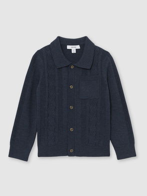 3-9 Yrs Stitch-Detail Polo-Collar Cardigan Cotton-Blend In Navy