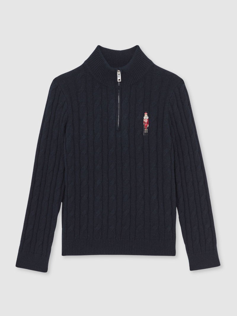 3-9 Yrs Wool-Blend Half-Zip Nutcracker Jumper In Navy Blue
