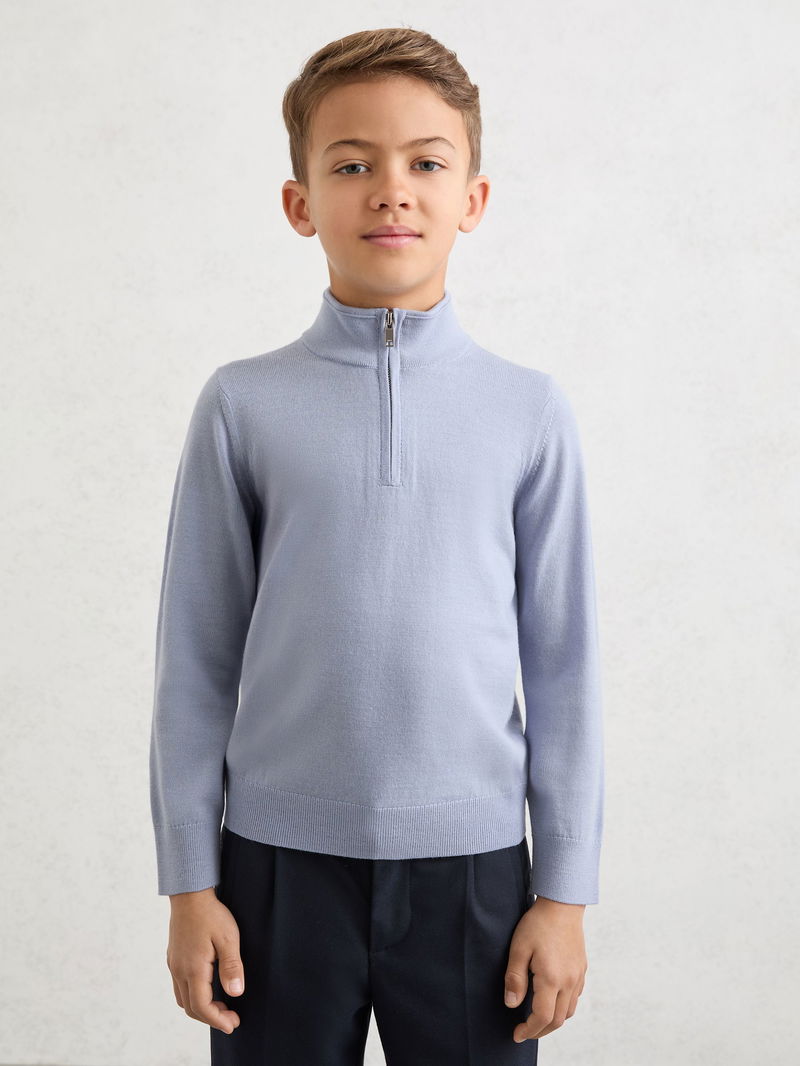 3-9 Yrs Wool Half-Zip Funnel Neck Jumper In Sky Blue
