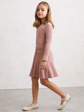 9-13 Yrs Contrast-Trim Rib-Knit Skater Dress In Navy