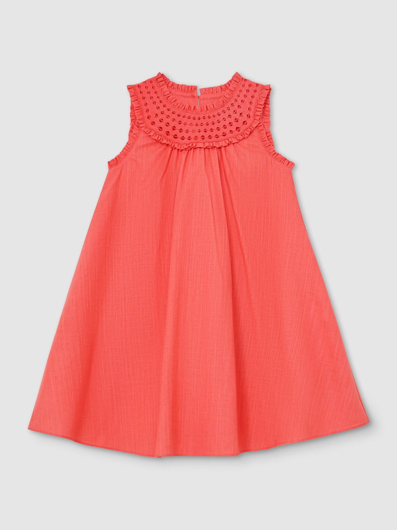 9-13 Yrs Cotton Cutwork-Embroidery Swing Dress In Coral Pink