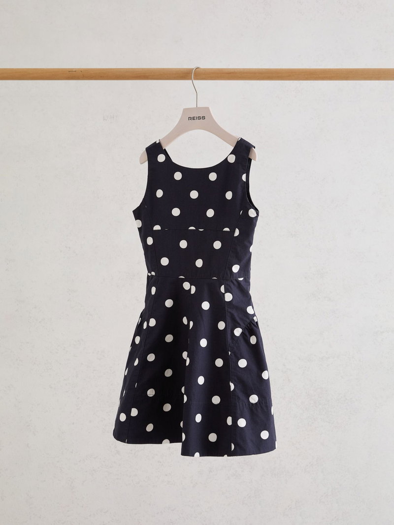 9-13 Yrs Cotton Polka-Dot Sleeveless Dress In Navy/Ivory