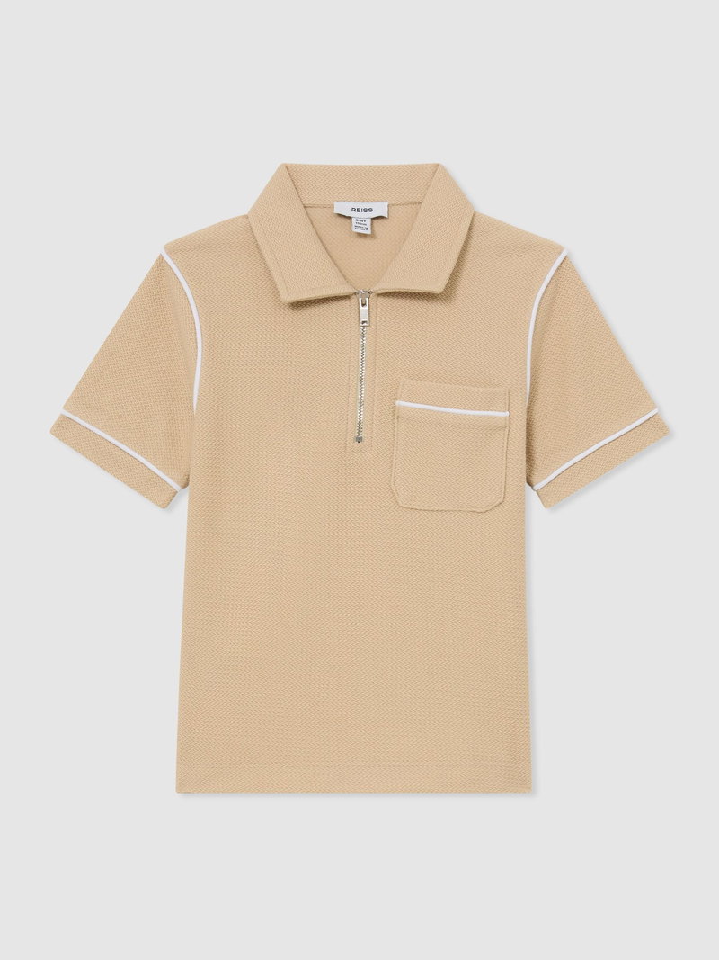 9-13 Yrs Cotton Textured-Knit Half-Zip Polo Shirt In Oatmeal