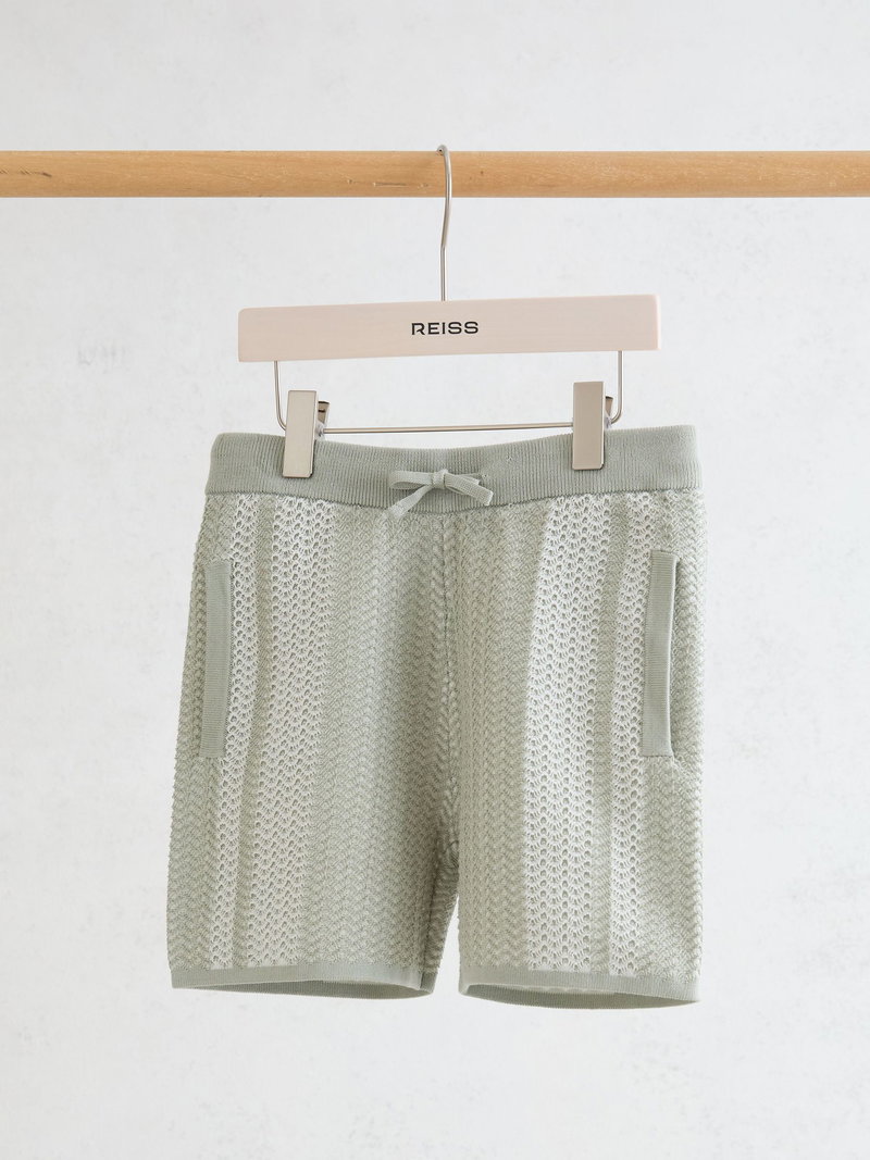 9-13 Yrs Cotton Textured-Knit Striped Shorts In Sage/White