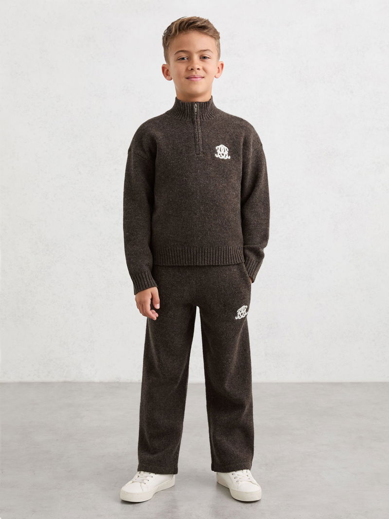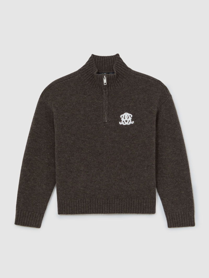 9-13 Yrs Monogram Relaxed Half-Zip Jumper Wool-Blend Unisex Fit In Chocolate Brown