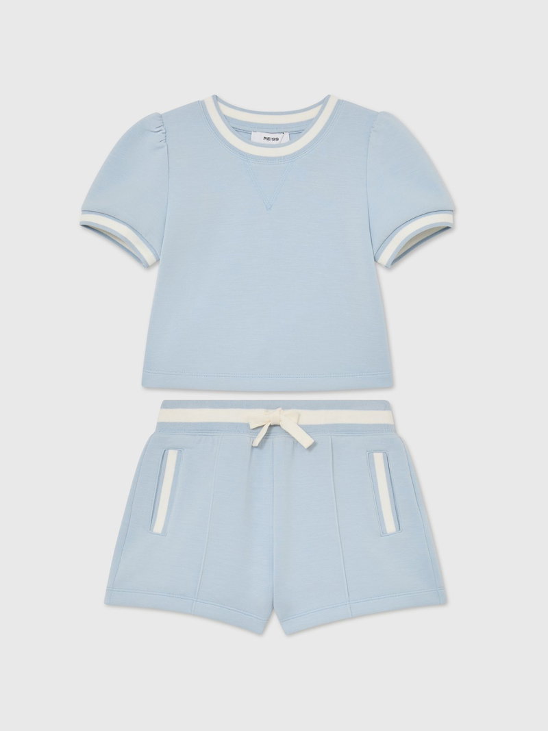 9-13 Yrs Premium Interlock Top And Shorts Set In Pale Blue