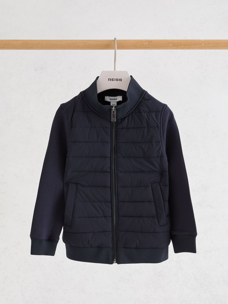 9-13 Yrs Quilted Hybrid Zip-Front Jacket In Navy