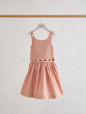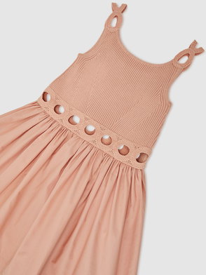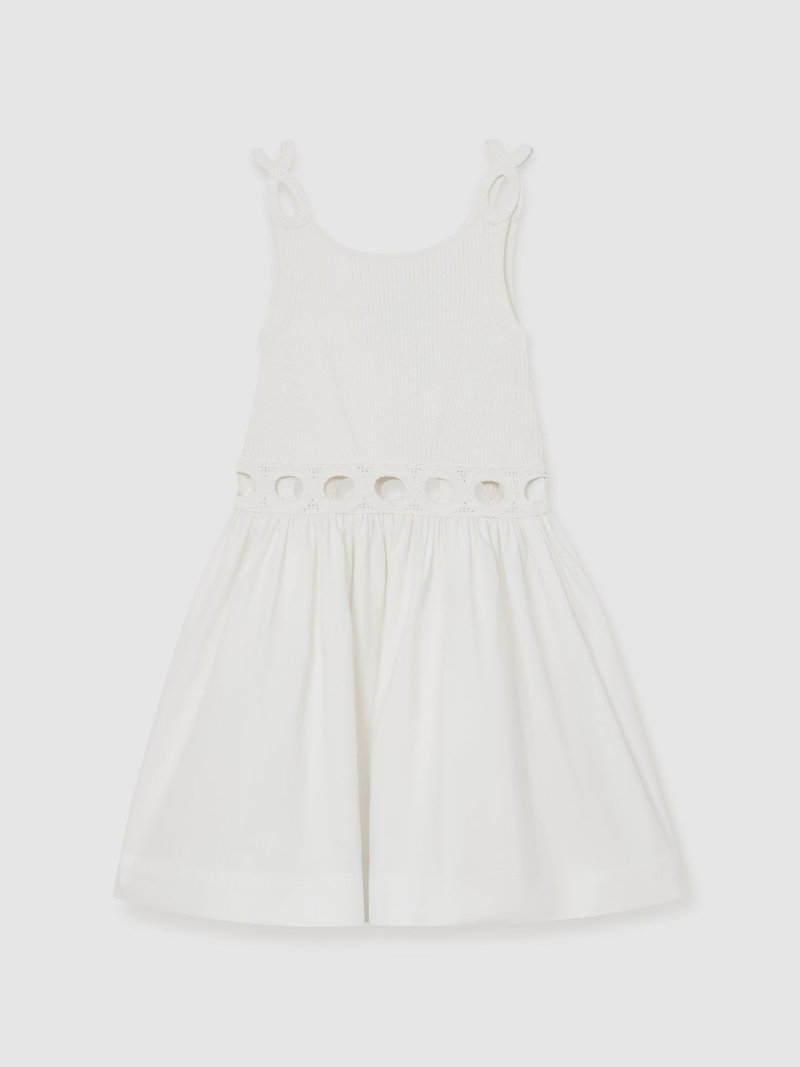 9-13 Yrs Rib-Knit Mix Cut-Out Flared Dress In White