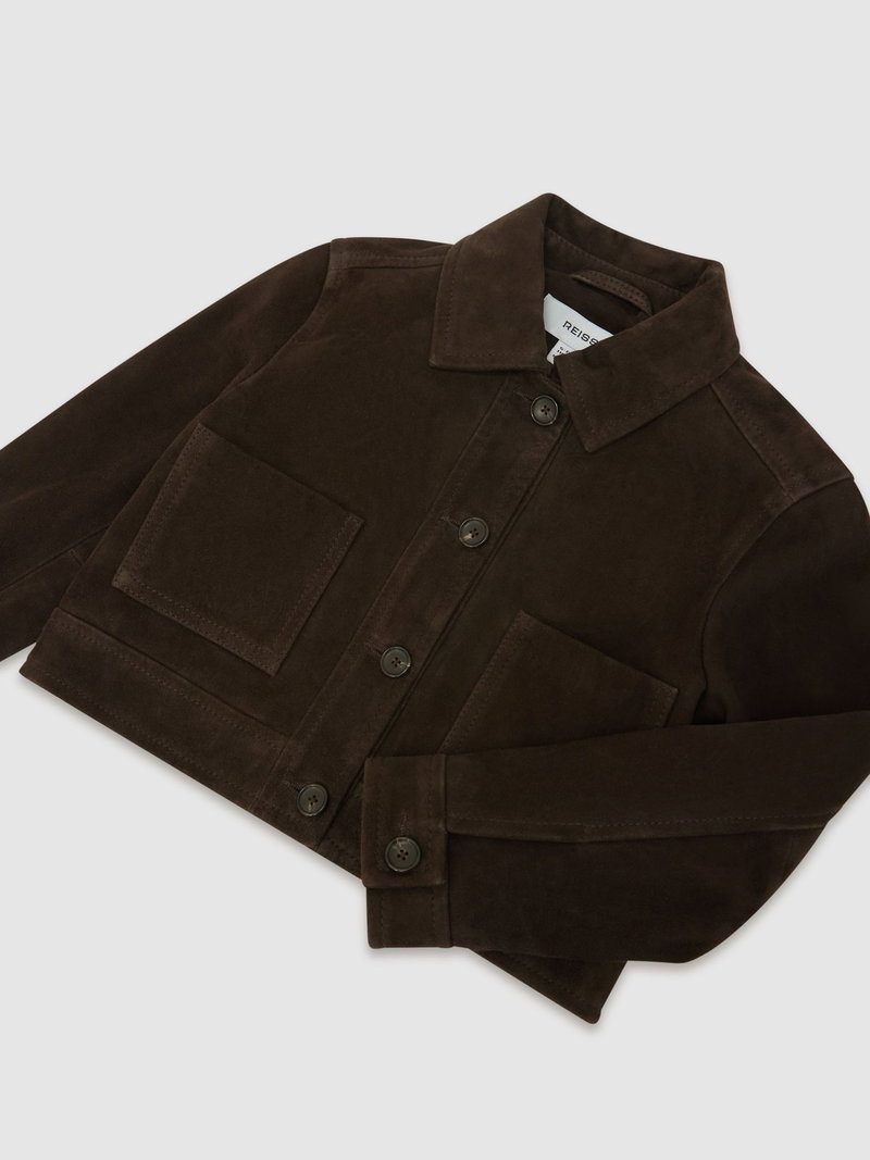 9-13 Yrs Suede Twin-Pocket Jacket In Chocolate Brown