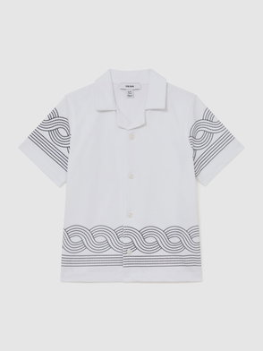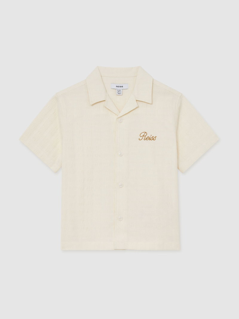 9-13 Yrs Textured Logo-Embroidered Shirt In White