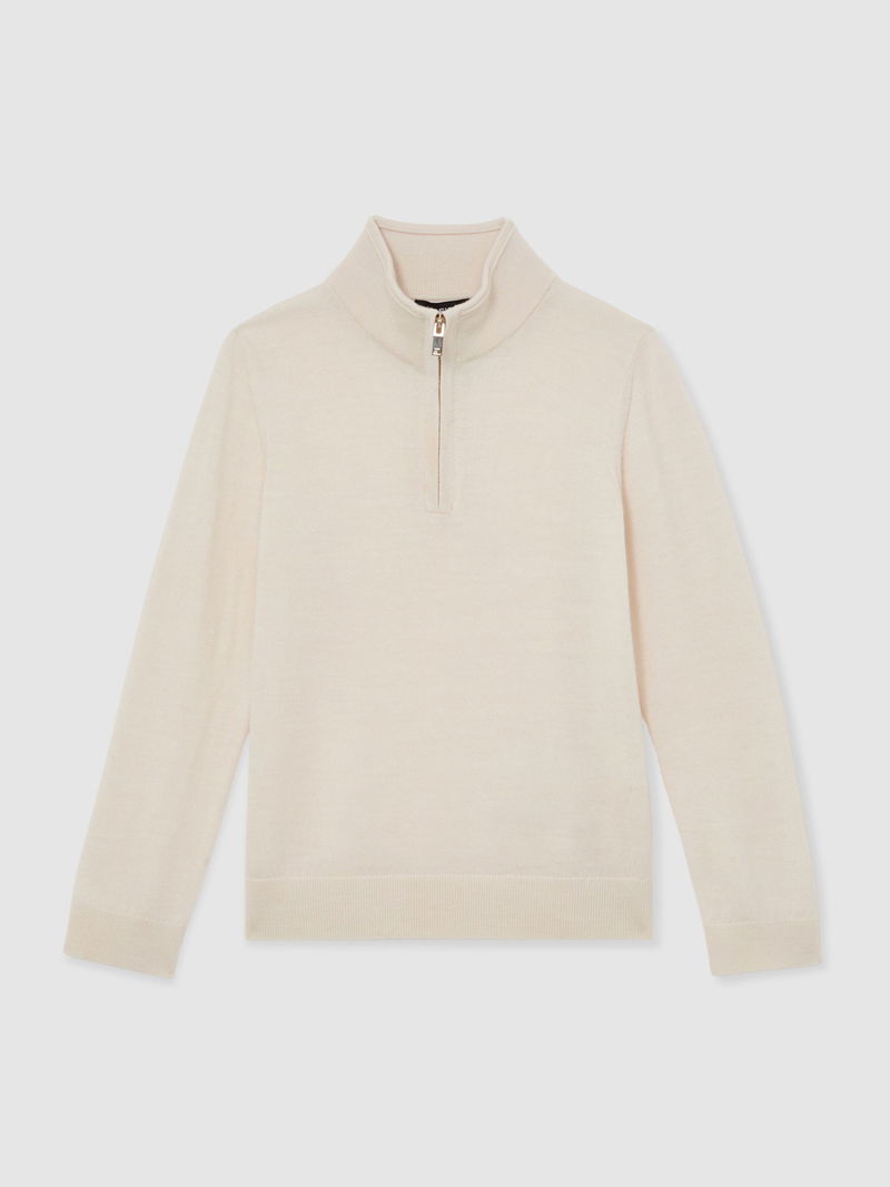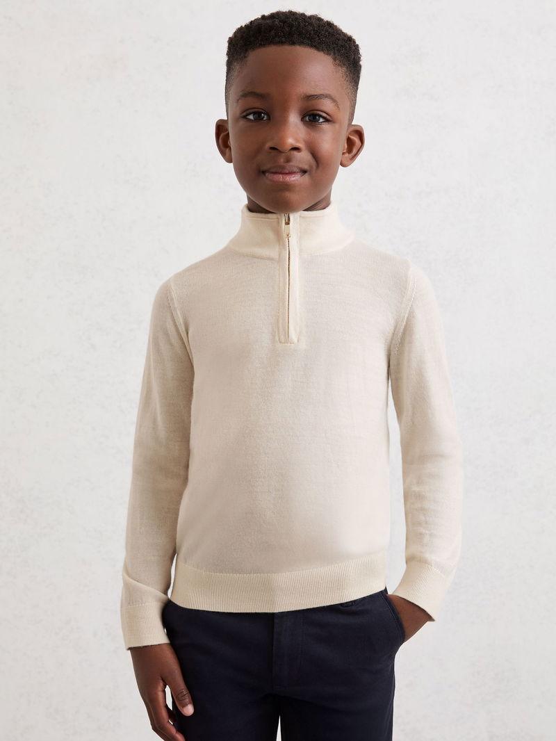 9-13 Yrs Wool Half-Zip Funnel Neck Jumper In Snow White
