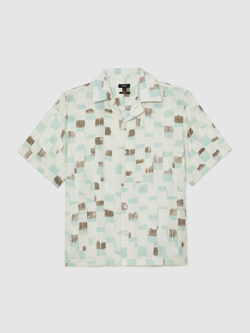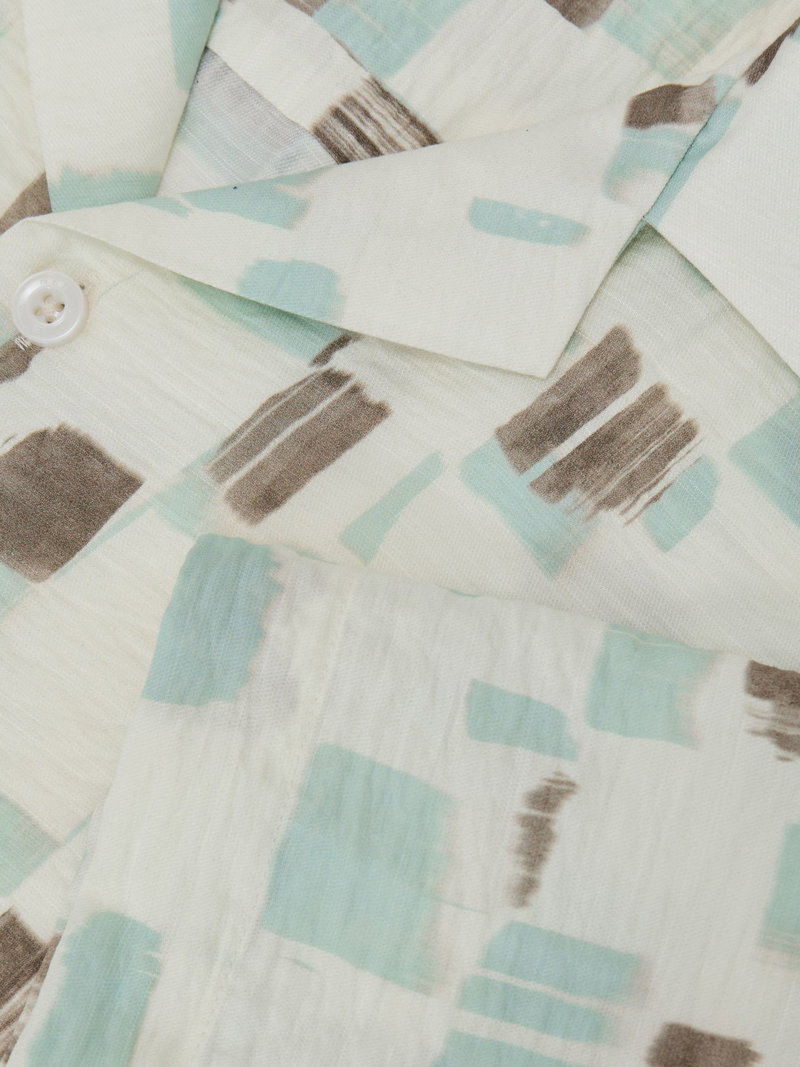 Brushstroke-Print Cuban-Collar Shirt In Off White