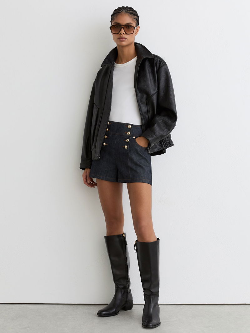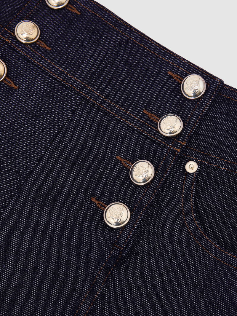 Button-Detail Denim Shorts In Dark Blue