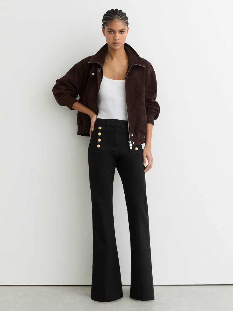 Button-Detail Flared Jeans In Black