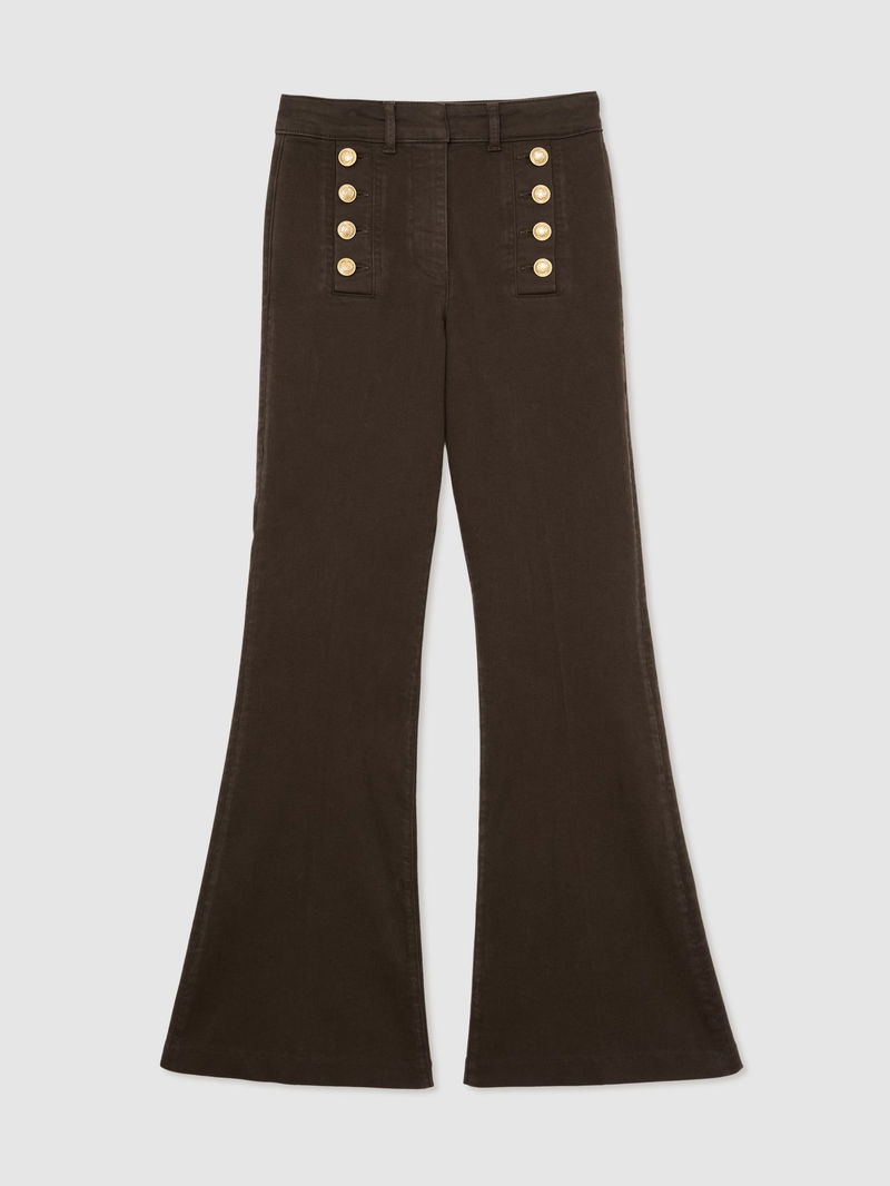 Button-Detail Flared Jeans In Khaki Green