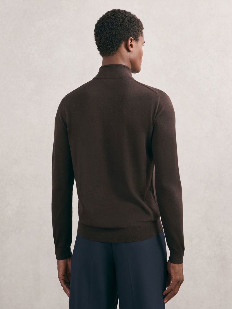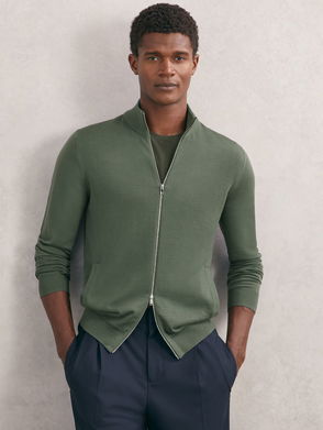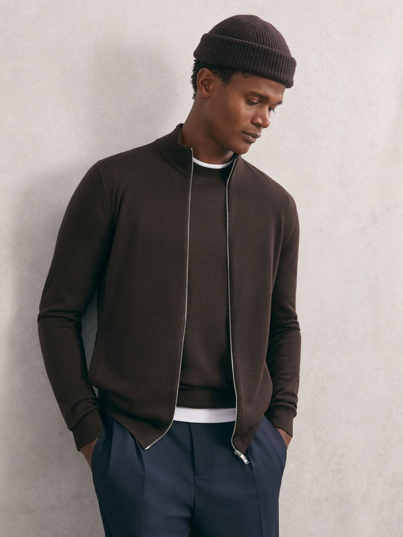 Extra-fine merino wool lends a soft, smooth hand-feel to the Hampshire cardigan. It’s designed with a classic funnel neck and a dual front zip, allowing for multiple styling options.