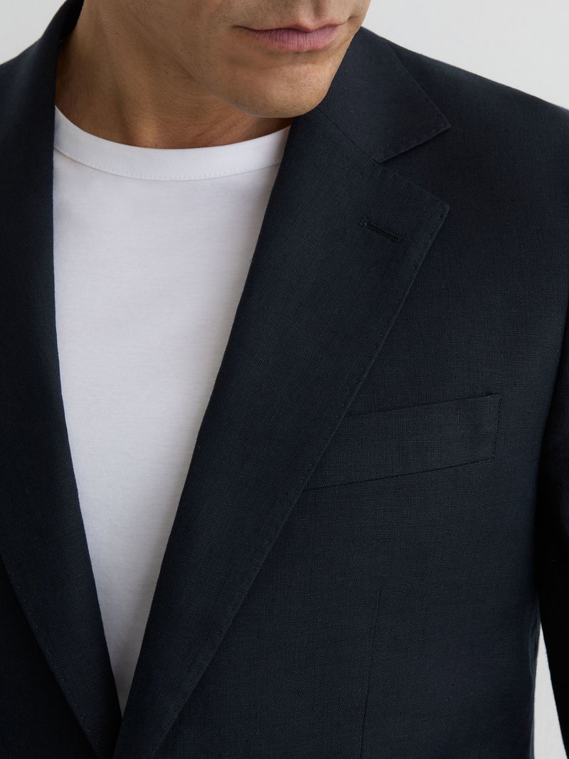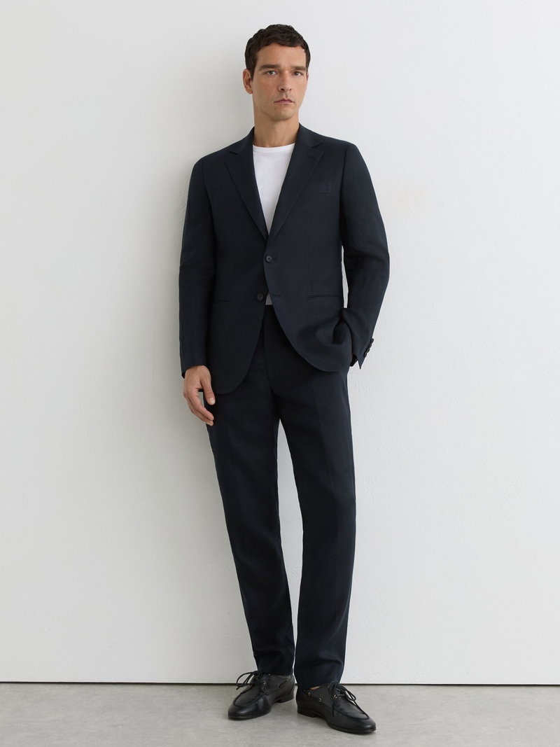 Classic-Fit Linen Single-Breasted Suit Blazer In Navy