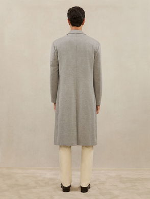 The Smarter overcoat is a double-breasted, relaxed-fit style with subtly shaped shoulders for a structured yet effortless silhouette. Peak lapels, flap welt pockets, and pick stitching add classic tailoring details, completed with a six-button front.
