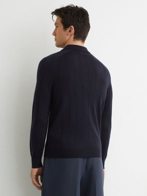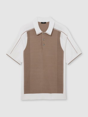 Colour-Block Knitted Polo Shirt In White/Airforce Blue