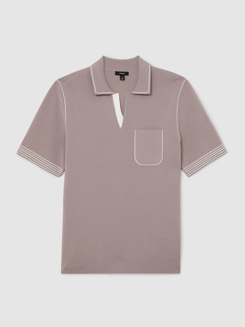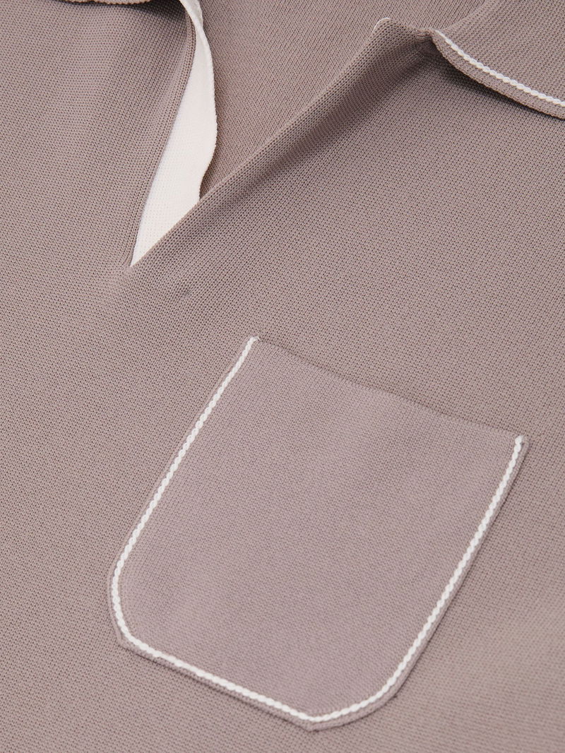 Contrast-Stitch Knitted Polo Shirt In Light Taupe Brown