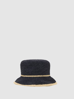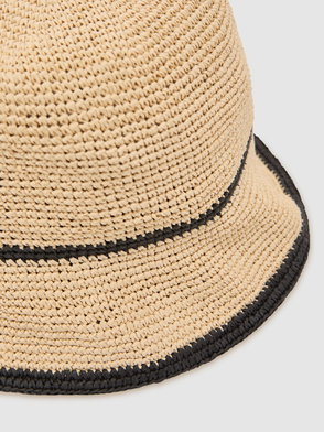 Contrast-Trim Straw-Effect Hat In Natural