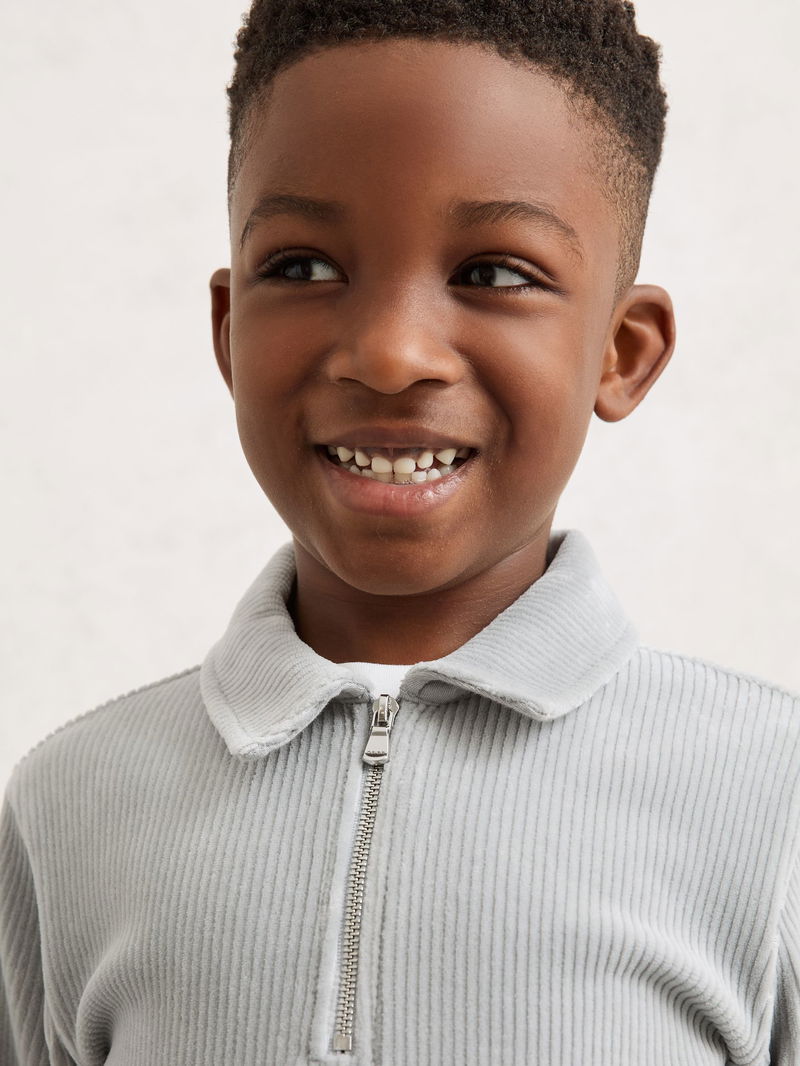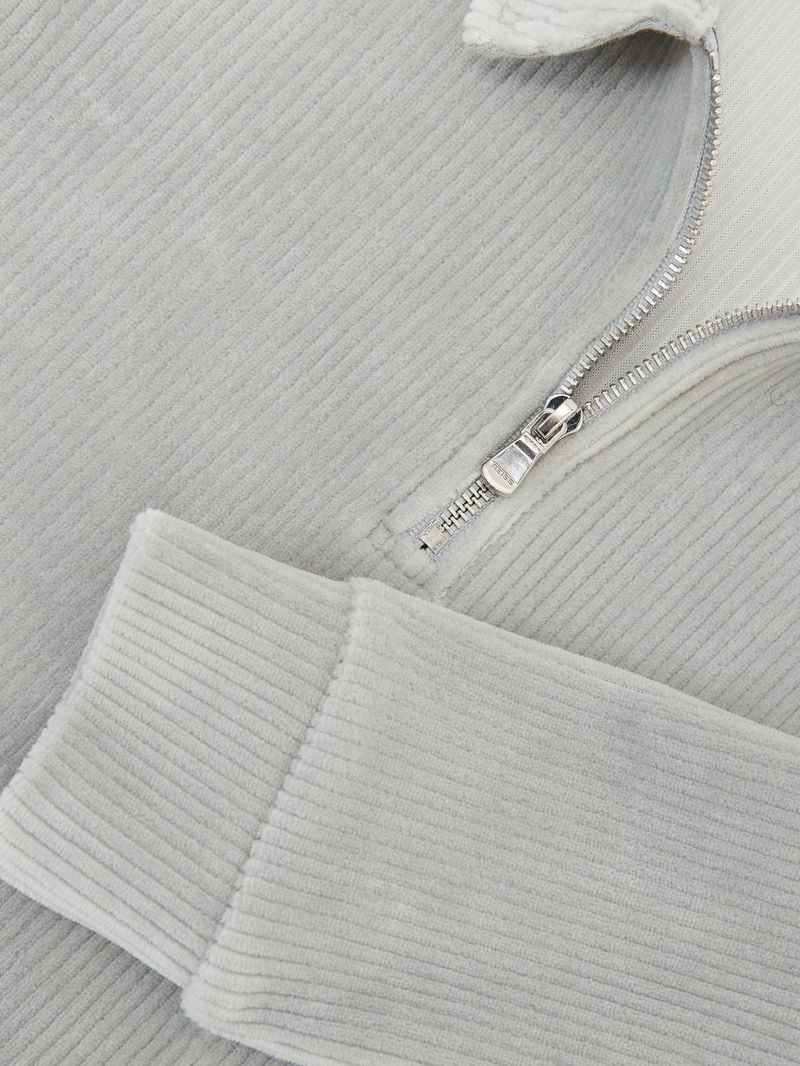 Corduroy Half-Zip Polo Shirt In Soft Grey