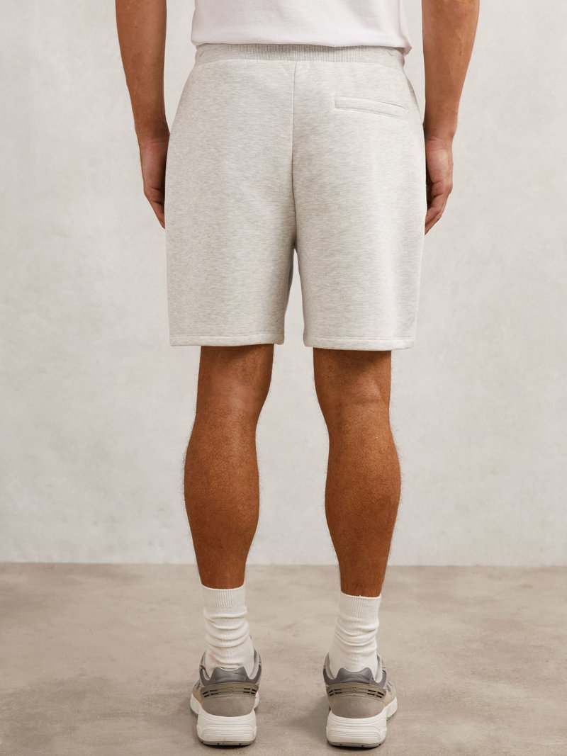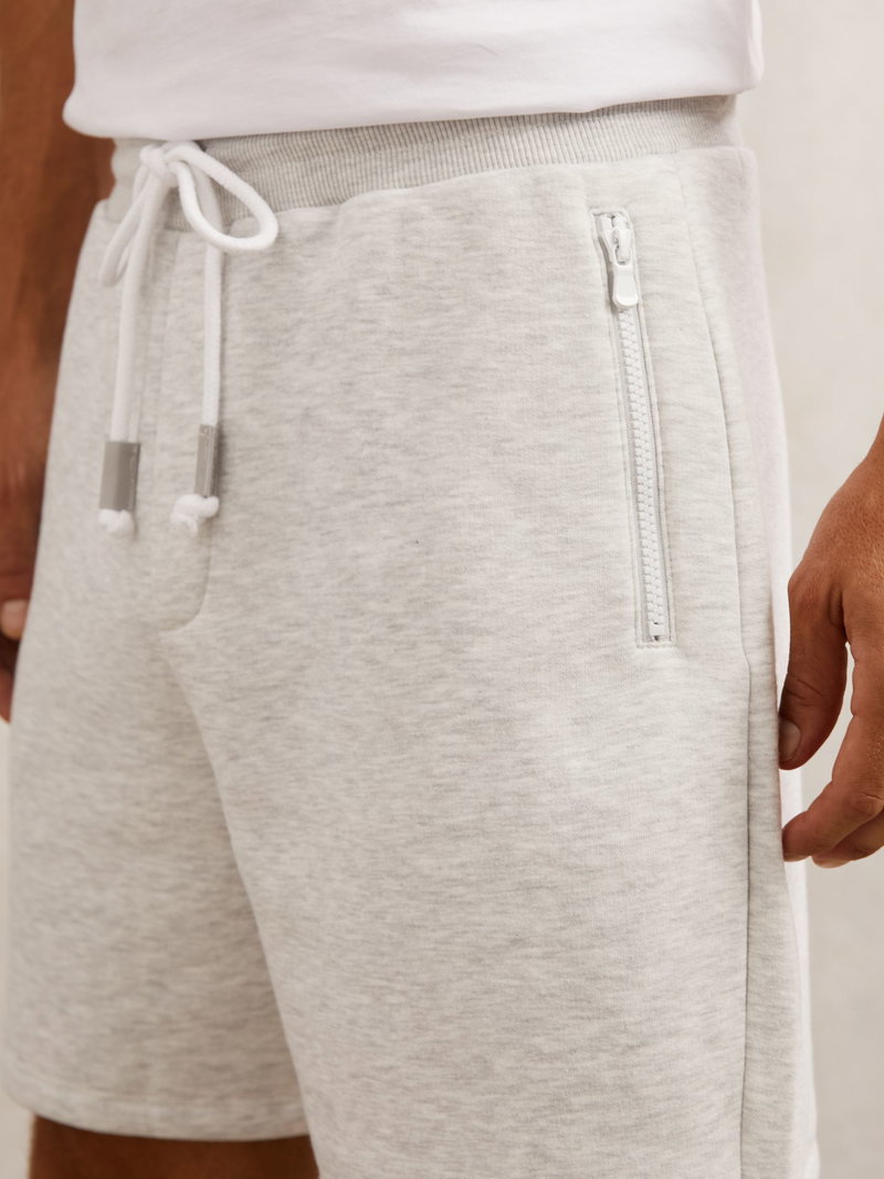 The grey Dusk shorts are crafted from cotton-blend jersey with a fleece-back finish for a soft, comfortable feel. Waist drawstrings are finished with logo-stamped trims for a subtle signature finish.