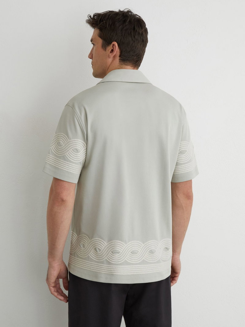 Cotton-Blend Embroidered Cuban-Collar Shirt In Dark Green