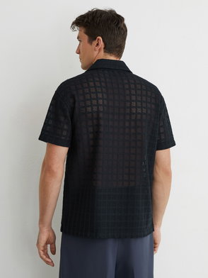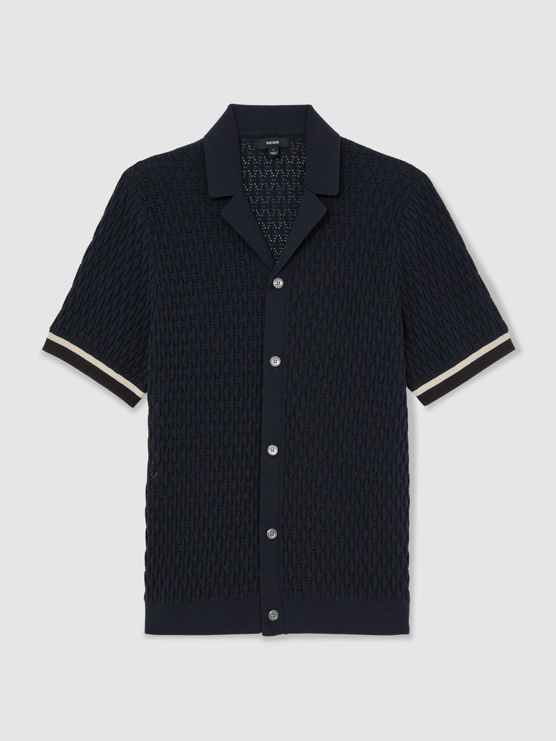 Cotton-Blend Geometric-Knit Tipped Shirt In Navy