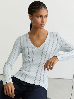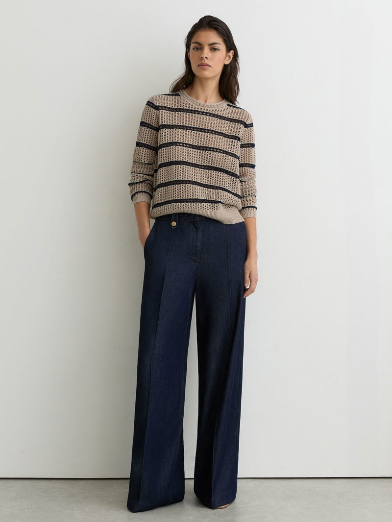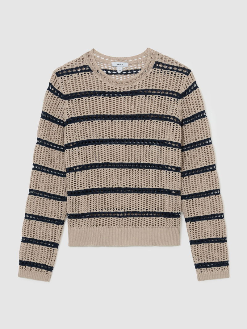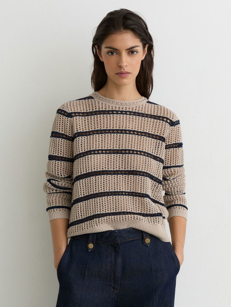 Cotton-Blend Open-Knit Stripe Jumper In Neutral/Navy